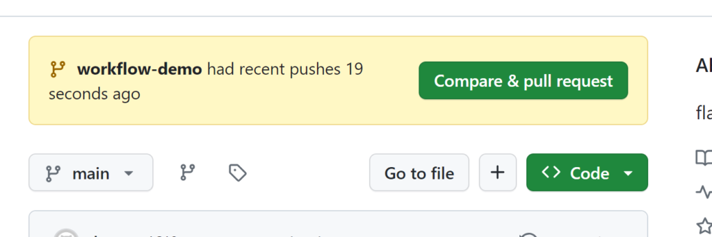 Clicking on “Compare and Pull Request” takes us to